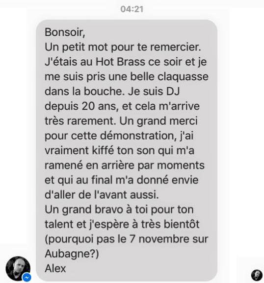 Je te parle en connaissance de cause. Durant mes 22 années de carrière, j’ai pu mixer dans plus de 1000 évènements, partout en Europe. Aujourd’hui, je continue à faire de grosses scènes et franchement, je prends toujours autant mon pied.