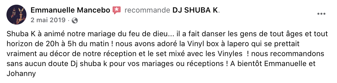 Imagine que juste après avoir passé ces 30 jours avec moi, deux jeunes amoureux décident de te faire confiance pour animer le plus beau jour de leur vie…