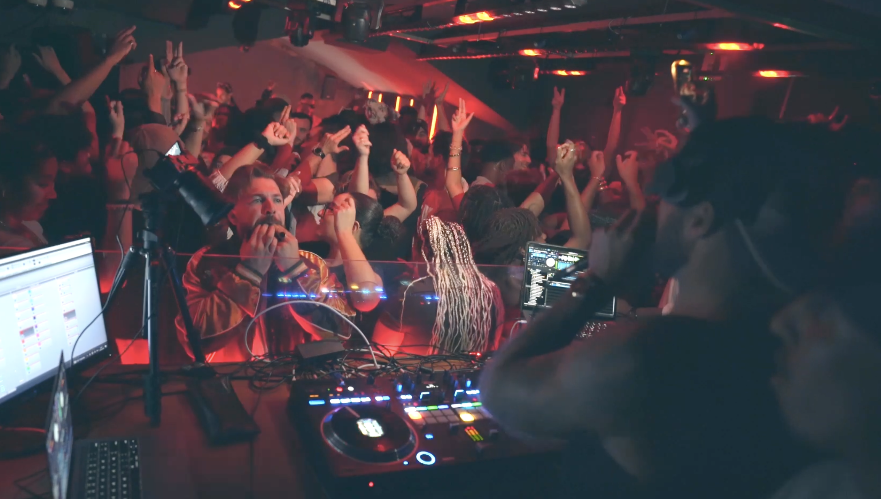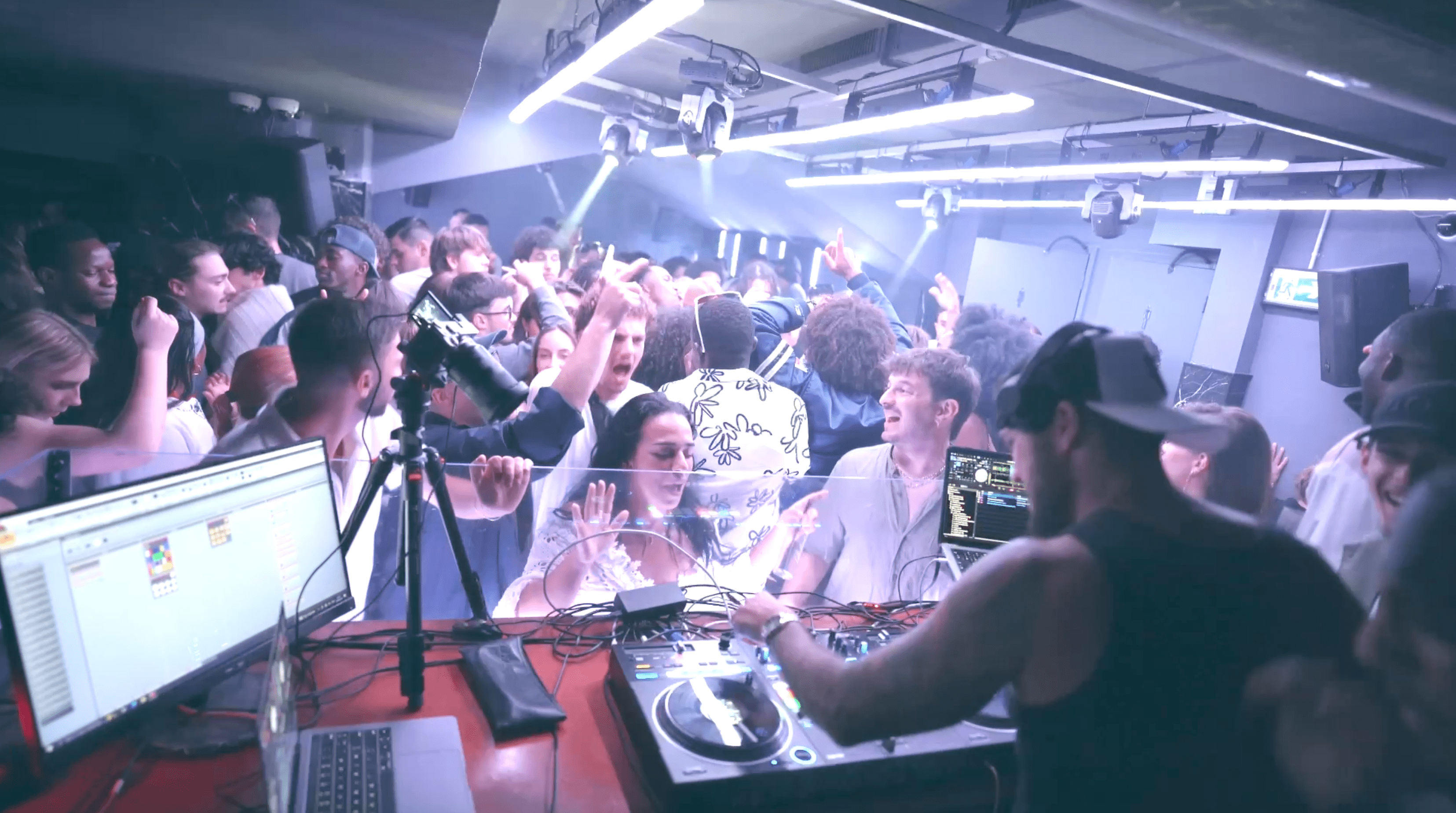 → Accès complet à 2 heures de mix en conditions réelles, filmées en double angle — caméra sur les platines ET caméra sur le public — pour voir simultanément ce que je fais techniquement ET la réaction que ça provoque sur la piste, seconde après seconde