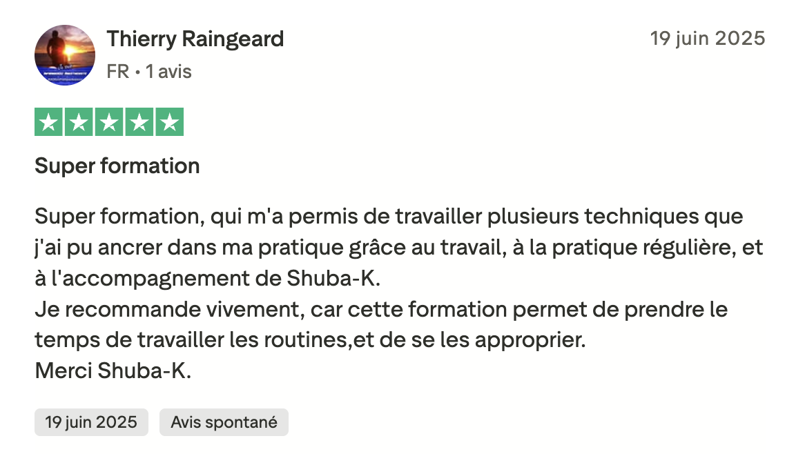 Ce que t'as appris jusqu'ici, c'est de la technique isolée, sans contexte. Sans vision globale. Sans quelqu'un pour te dire "là c'était bien" ou "là t'as cassé l'énergie, voilà pourquoi".